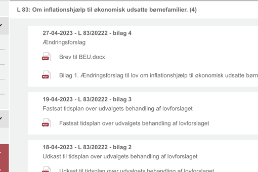 Disse steder skal du blot klikke på forslagstitlen i bjælken. Så får du vist forslaget med samtlige dokumenter.