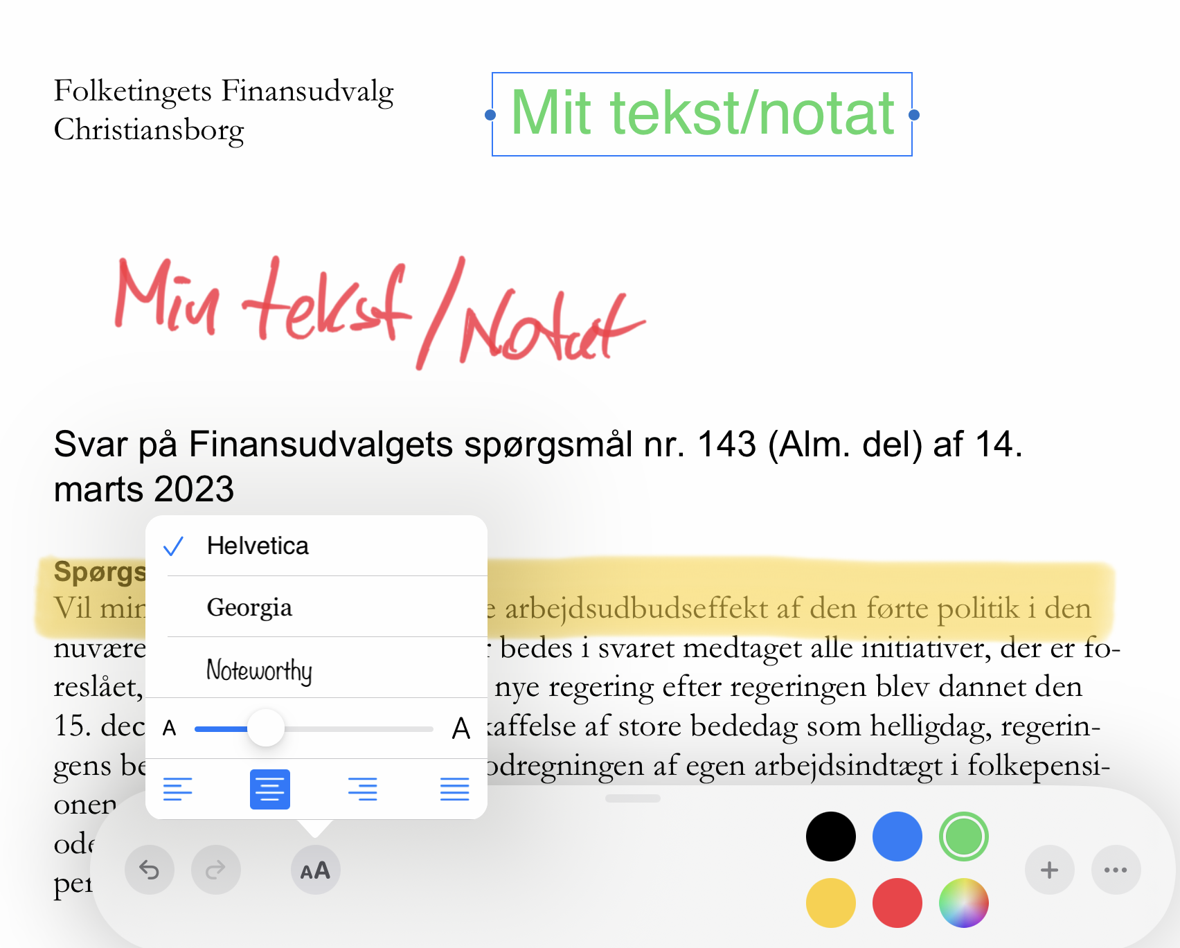 En af de nye muligheder i Tinget er, at du kan lave noter i de enkelte filer. (Gælder kun på iPad. noterne VISES også på PC)
