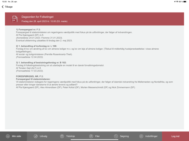 Og hvis du klikker på PDF-symbolet øverst til venstre, vil du få vist PDF-udgaven af dagsordenen.