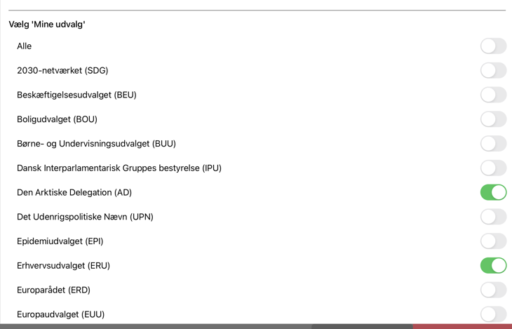 De udvalg du tilvælger er dem som går under betegnelsen "Mine udvalg".