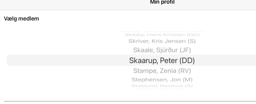 Hvis det er allerførste gang du bruger Tinget, vil du blive bedt om at logge ind, og Tinget vil så selv vælge dig (hvis du er medlem af Folketinget) fra listen.
