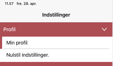 Det første punkt under indstillinger er "Profil".