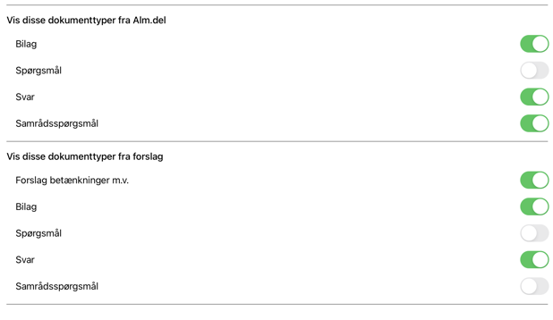 For Forslags-fanerne, kan du også vælge, om dokumenter fra færdigbehandlede forslag skal vises.