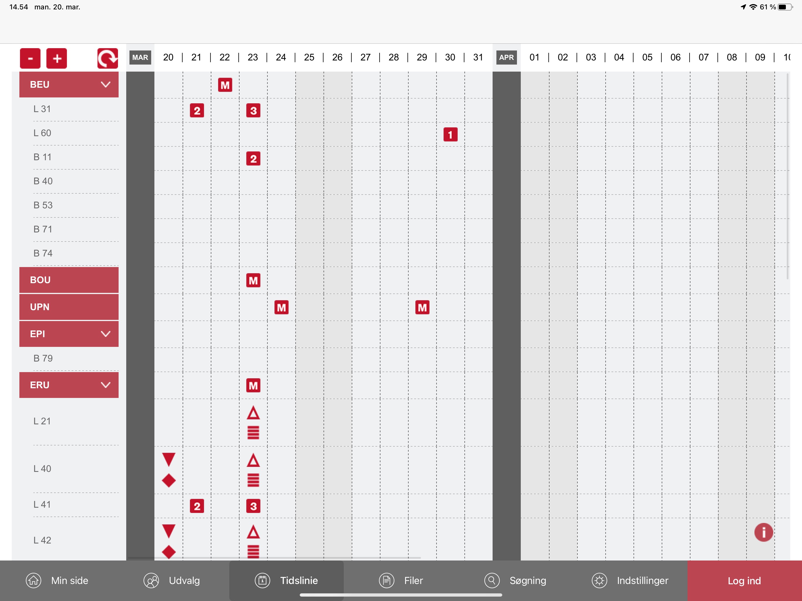 Nogen af symbolerne - typsik 1., 2. og 3. behandling - kan optræde enten som grå eller som røde symboler.